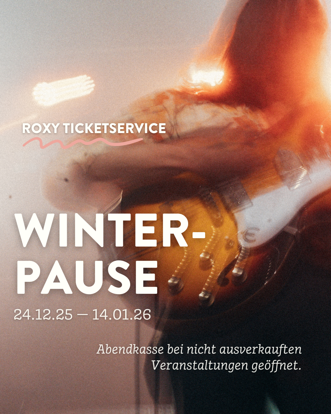 Reguläre Öffnungszeiten: Mittwoch—Freitag, 17:00—19:00 H (außer an Feiertagen). Fragen zu Tickets (kein Ticketverkauf!) beantworten wir außerdem per Mail: ticket@roxy.ulm.de // und Telefon: 0731.96862-0