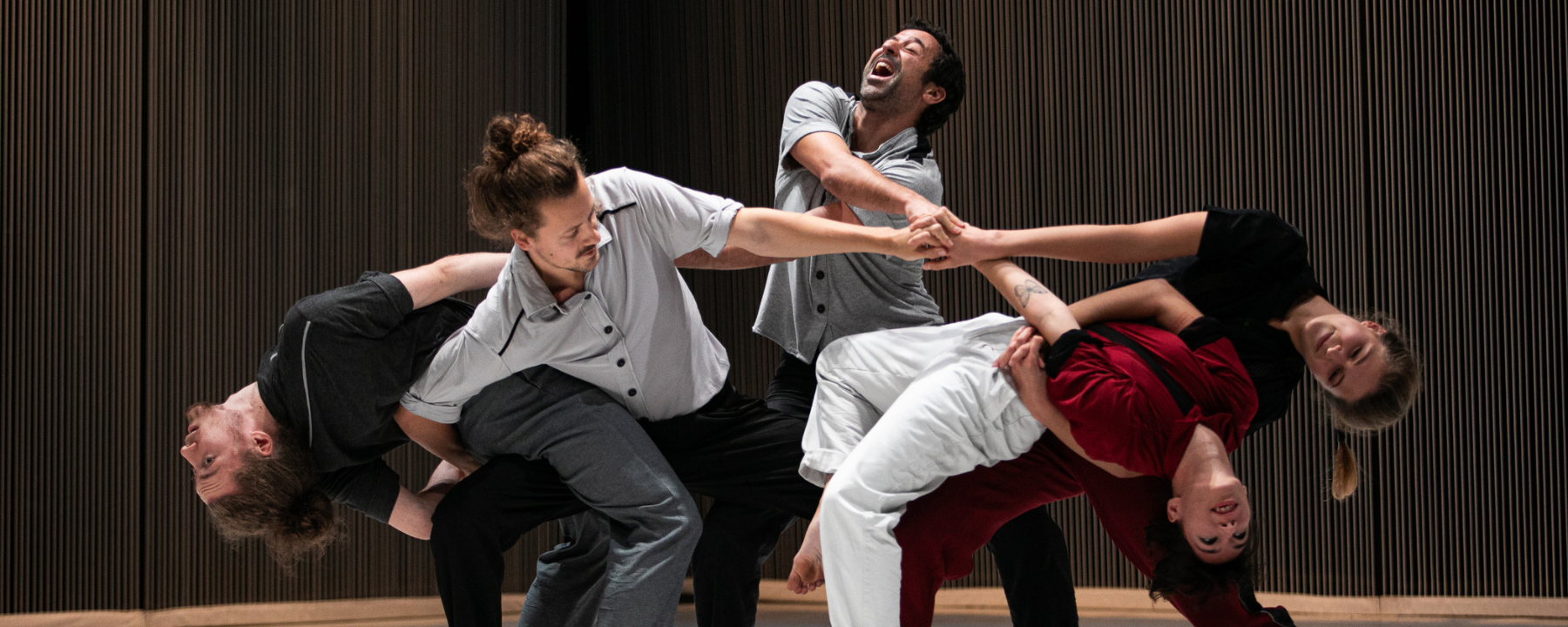 In TRAMA wird die Bühne zur pulsierenden Partitur eines Kollektivs: Körper verschränken sich, lösen sich, finden sich neu. Wie in einem Konzert entstehen Stimmen, Rhythmen und Spannungen – mal im Einklang, mal voller Reibung. Eine Gruppe. Eine Band. Ein Geflecht aus Beziehungen.