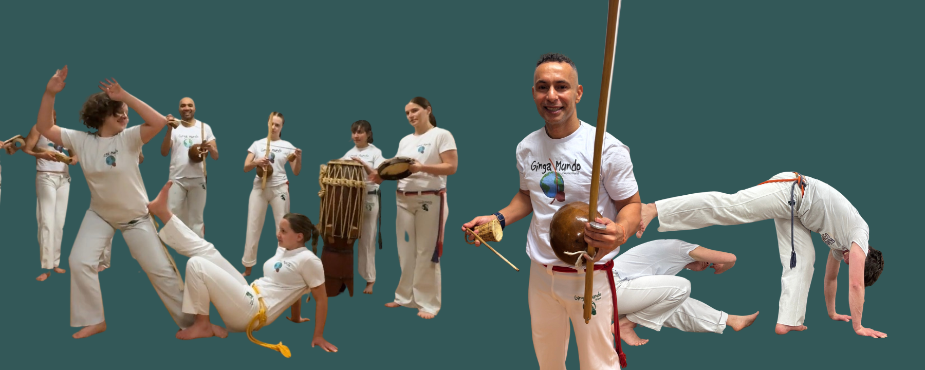 Doch Capoeira lebt nicht nur vom Körper, sondern auch von der Musik: Gemeinsam singen wir traditionelle Lieder und entdecken typische Capoeira-Instrumente wie Berimbau, Atabaque und Pandeiro.