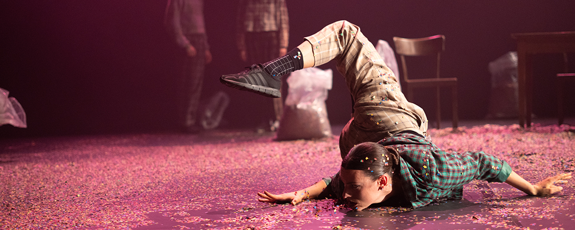 SEX MIT MADONNA nimmt die gesellschaftlich tabuisierte bipolare Störung in ihrer Körperlichkeit auf. Die bipolare Störung, auch manisch-depressive Erkrankung genannt, ist eine der häufigsten psychischen Erkrankungen in Deutschland und bringt Betroffene oft in prekäre Situationen. Wie bewegt sich ein manischer Körper und wie ein depressiver? Die Spannung zwischen Manie und Depression in einer Person, die Körper und Geist schier zerreißt, ist der Kern dieser choreografischen Auseinandersetzung. Mit drei Tänzer:innen und 100 kg buntem Konfetti zaubert Chris Jäger einen luziden Traum.