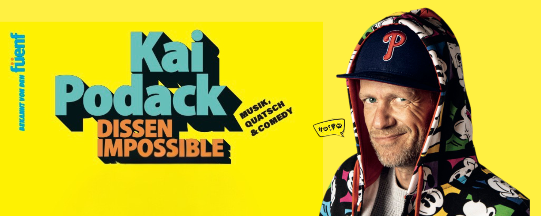Kai Podack, die charismatische Stimme der legendären Füenf und des Hits „Mir im Süden", geht solo auf Mission! Mit Dissen Impossible serviert er ein einzigartiges Musik-, Quatsch- und Comedy-Programm, das Grenzen sprengt.